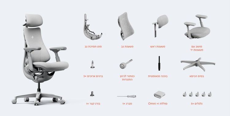 כל רכיב בכיסא מתאים את עצמו בזמן אמת ונע בסנכרון עם תנוחת הגוף - ממשענת הראש ועד המושב